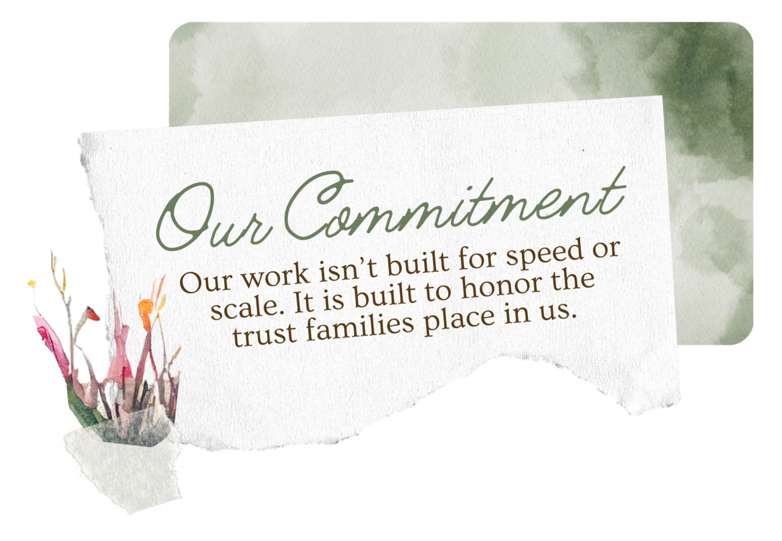 Our work is deeply time-intensive and is what makes our services meaningful, unique, and worthy of the families we serve.
